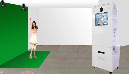 傳統的照相機,包括數碼照相機都是以實際景物為背景,由他人為照相者拍攝,或由照相者啟動自拍功能后跑到相應位置,延時數秒后拍攝。照相者不能看到自己在拍攝時的表情,拍攝的效果要在事后才能看到。在安裝有數碼攝像頭的計算機面前,照相者可以實時拍攝到能看到的自己表情的影像,但不能實時拍攝到自己在期望的虛擬背景下的影像,當然更不能實時拍攝到在一張照片上。從不同角度能看到不同影像的動感照片?;谒{背景摳像技術的虛擬環境下的實時自助照相技術,它能將自助式照相、可選虛擬背景下照相和將多次拍攝的影像互補合成為動感照片的功能集成在一起,以便照相者發揮自我個性,展示自我風采。
