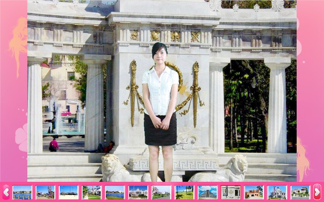 選好背景圖后按“拍照”鍵進(jìn)入到拍照界面,你還可以根據(jù)背景的實(shí)際情況調(diào)節(jié)好人的大小“放大/縮小,人物的位置“方向鍵”。調(diào)整好后就按“拍照”鍵進(jìn)行拍照